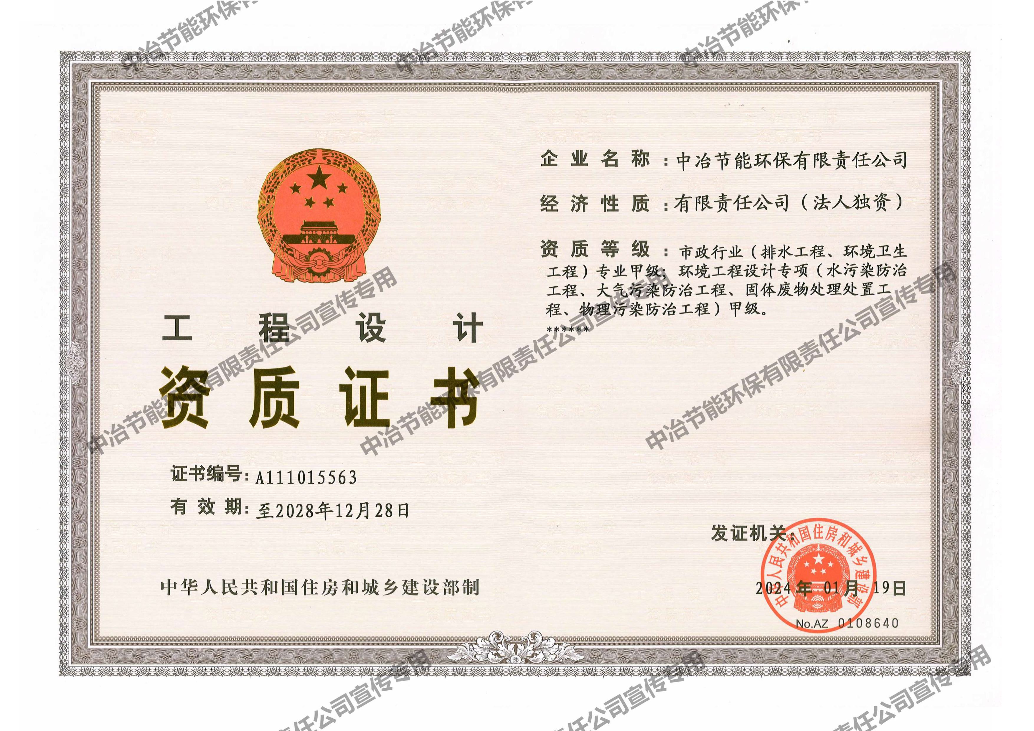 工程设计资质证书